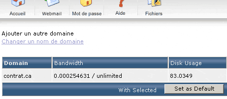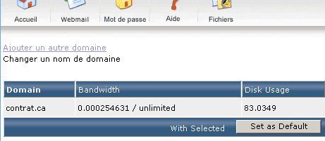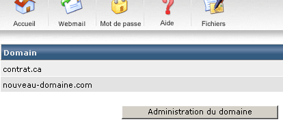 Une fois que vous avez ajouté votre nom de domaine, la page principale de votre compte sera précédée d'un menu pour vous permettre d'indiquer le nom de domaine que vous souhaitez administrer. Vous devez soit cliquer sur le nom de domaine de votre choix, soit cliquer sur "Administration du domaine" pour modifier/supprimer un nom de domaine :