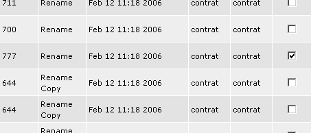 Pour copier/déplacer un fichier vous devez le sélectionner dans la colonne "Select" et cliquer sur "Add to Clipboard". Vous vous déplacez ensuite dans le répertoire ou vous souhaitez placer le fichier et vous cliquez sur "Copy Clipboard Files here". Si vous souhaitez y copier le fichier, "Move Clipboard Files here" si vous souhaitez y déplacer le fichier ou "Empty Clipboard" pour vider le fichier de la mémoire (il restera là ou il se trouvait). Pour supprimer un fichier ou un dossier vous devez le cocher et cliquer sur "Delete" :