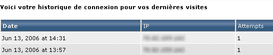 Lorsque vous cliquez sur l'historique de vos connexions, vous pouvez voir la date de vos connexions et votre adresse IP lors de cette connexion :