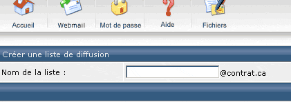Cette aide vous permet de créer une liste de diffusion. Pour ce faire, vous devez cliquer sur "Créer une liste de diffusion". Indiquez alors le nom que vous souhaitez donner à cette liste et validez en cliquant sur "Créer" :