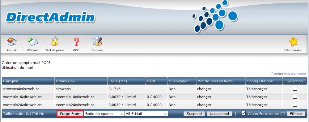 Lorsque ces choix sont faits, il ne reste qu'à cliquer sur le bouton « Purge From ».