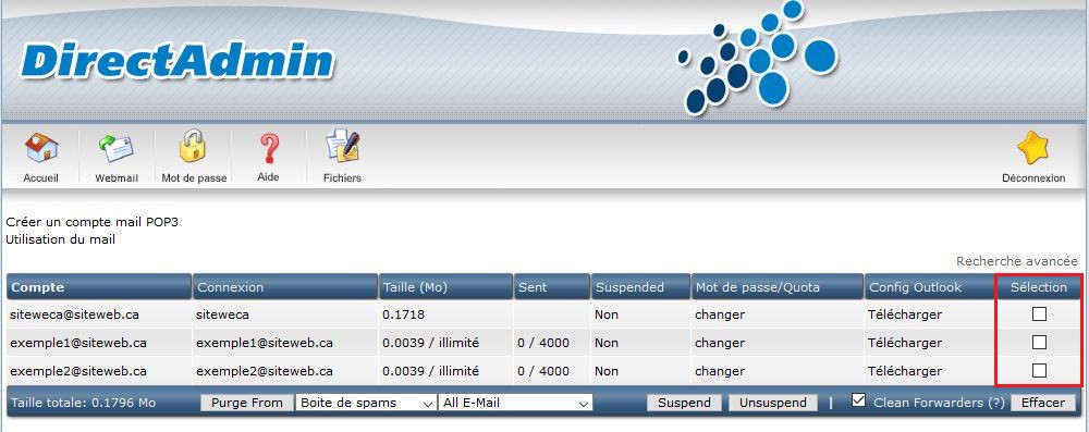 Attention! Ne pas cliquer sur « Effacer ». Cette action supprimerait votre adresse courriel sélectionnée complètement en y perdant toutes les informations, y compris les courriels non lus ou conservés.