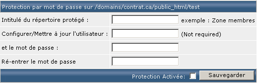 Indiquez l'intitulé du répertoire protégé (sans caractères accentués), le nom d'utilisateur et enfin le mot de passe qui seront nécessaires à l'identification. Une fois toutes les champs renseignés, validez par "Sauvegarder" :