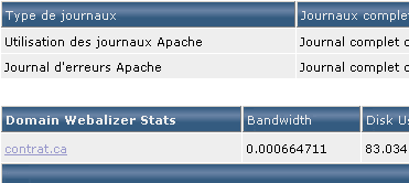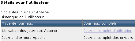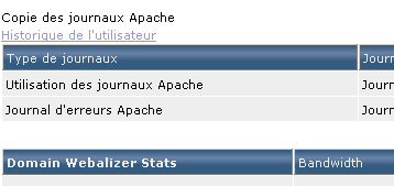 Pour regarder les requêtes effectuées sur votre site par vos visiteurs, vous disposez de deux journaux. En cliquant sur le nom du journal dans la colonne "Journaux complets" vous accédez à l'ensemble des écritures du journal. Pour ne voir que les 10 dernières écritures, ou 100 dernières, vous devez cliquer sur le journal de votre choix depuis la colonne "Dernières lignes dans le fichier". Notez que la lecture n'est pas intuive et plutôt destinée aux connaisseurs :